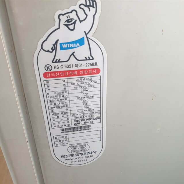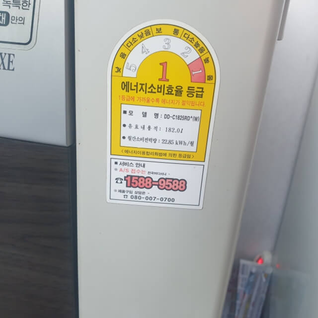 확인 방법은 김치냉장고에 붙여있는 에너지소비효율 스티커나 안전인증에 의한 표시 관련 스티커 등에서 확인할 수 있습니다.