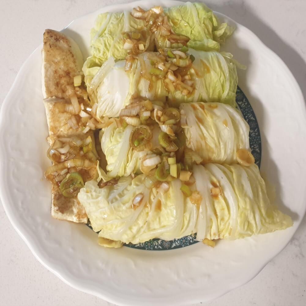 배추와 두부는 둘 다 칼로리는 낮고 영양분이 높아 다이어트에 좋다는 공통점이 있습니다. 각각 단독으로 먹어도 좋지만 두 가지를 같이 먹으면 포만감이 높고 더 다양한 영양소를 골고루 섭취할 수 있다는 장점이 있습니다. 배추두부말이 만드는 방법은 간단합니다. 알배기 배추 5~6장과 두부 반모가 필요합니다. 먼저 알배기배추는 찜기나 전자레인지를 통해 10여분 살짝 쪄주세요. 두부 반 모는 키친타월을 이용해 물기를 제거해 준 후 적당한 굵기로 잘라줍니다. 팬에 기름을 두르고 두부를 앞뒤로 노릇노릇하게 부쳐줍니다. 찜기에서 다 쪄진 배추는 한 김 식힌 후 도마 위에 펴 놓고 두부를 얹어서 김밥 말듯이 둘둘 말아줍니다. 모두 이런 식으로 말아준 후 먹기 좋은 크기로 3 등분해서 잘라줍니다. 배추쌈을 찍어 먹을 간장 소스를 만들어줍니다. 저는 간장과 식초, 알룰로스, 겨자분말 등을 넣고 다진 파를 곁들여 만들었습니다. 취향대로 다양한 소스를 만들어 곁들이면 됩니다. 배추두부말이는 맛도 담백하지만 2~3개만 먹어도 포만감이 들어서 다이어트에는 더없이 좋은 음식입니다.